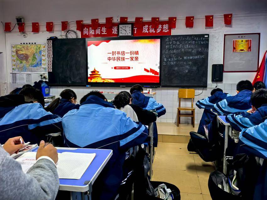 据悉,该校制作《襄琼同心》视频集锦,对接琼结学校,定制统一信笺。11月10日起,通过视频观摩课解读民族团结内涵,组织学生手写书信,分享襄阳文化、校园生活,询问琼结民俗景观。随后寄递信件,鼓励学子维系长期友谊。