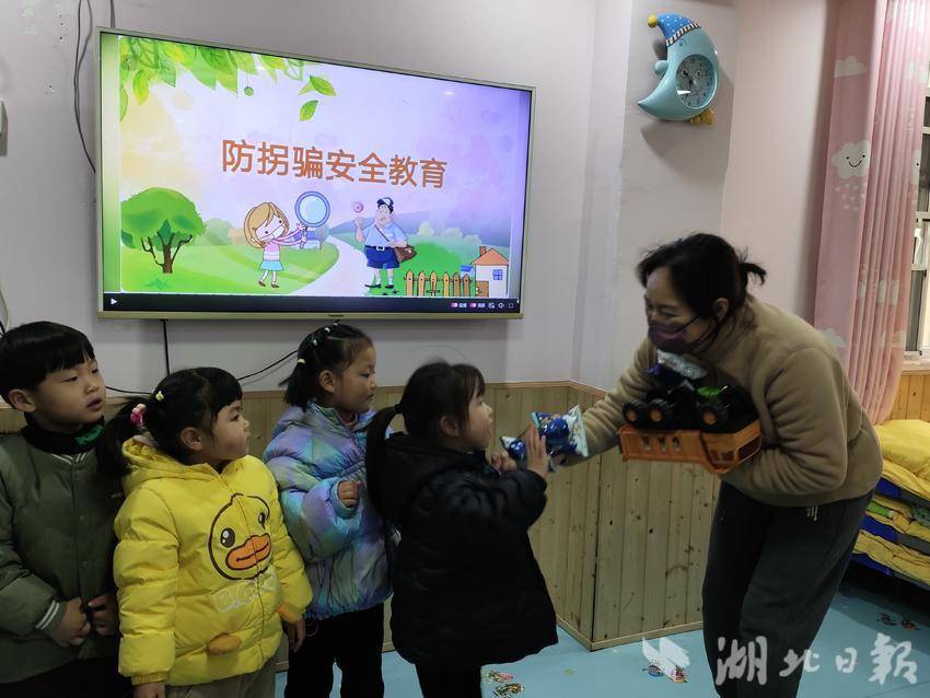 活动中,教师们扮演“陌生拐骗者”,利用糖果、玩具等幼儿喜爱的物品作为诱饵,对孩子们进行“拐骗”尝试。面对“陌生人”的诱惑,部分幼儿起初有些犹豫,但在想起老师讲解的安全知识后,纷纷果断拒绝,有的幼儿还主动向身边的老师“求助”。孩子们表现得沉着冷静,在亲身体验中学会了辨别危险、保护自己。