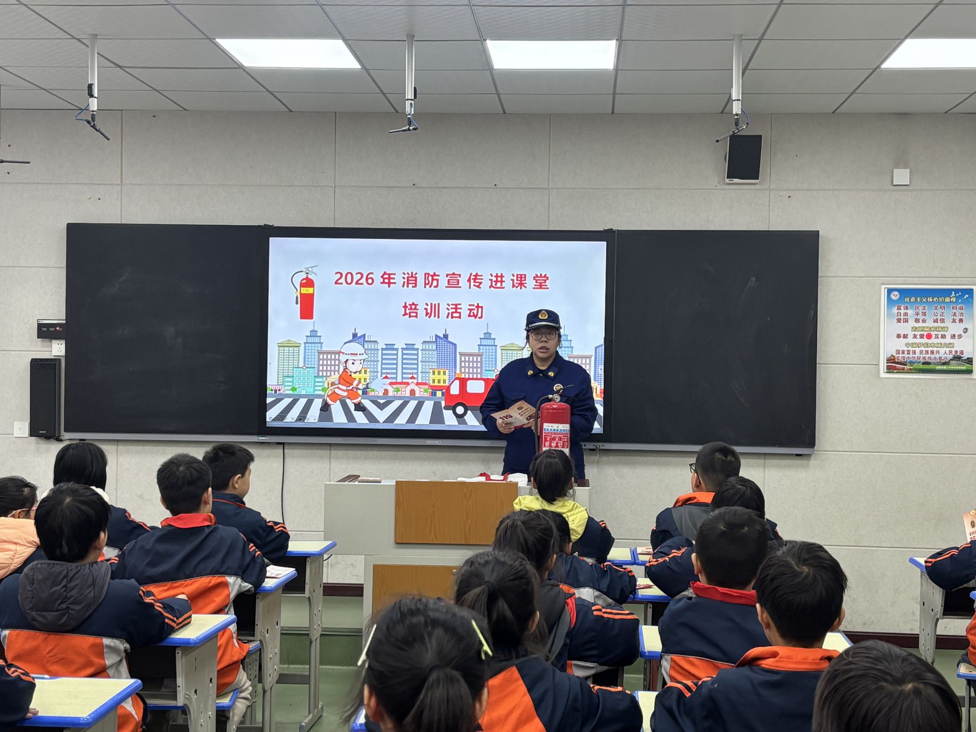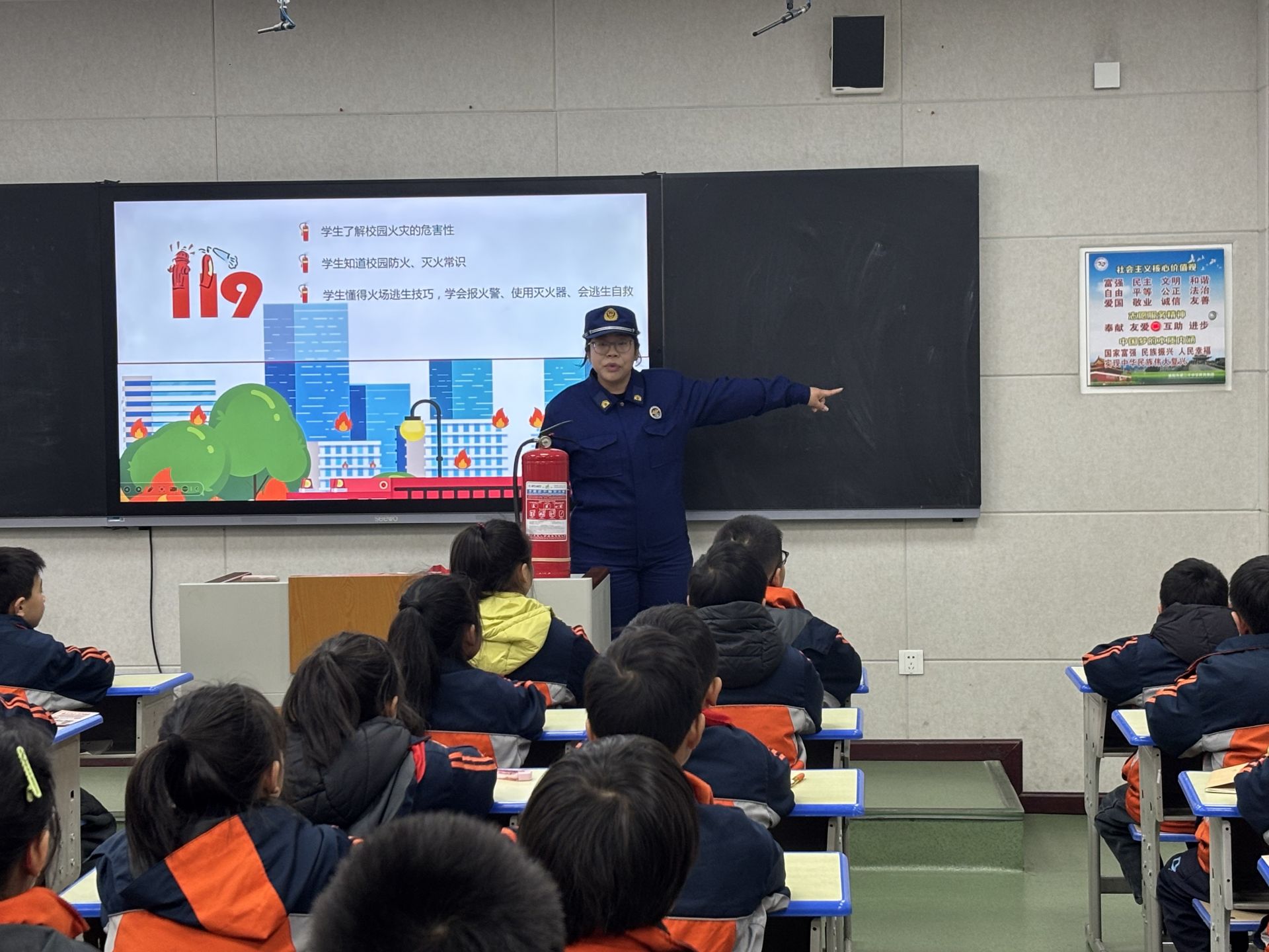 讲座开始前,高新消防支队的工作人员向全体学生发放了精心编制的《消防安全知识手册》,手册以图文并茂的形式呈现火灾预防、火场逃生等核心内容,为课堂学习做好铺垫。课堂上,教官以“了解校园火灾危害、掌握防火灭火常识、熟悉火场逃生技巧”为核心目标,结合典型校园火灾案例,用直观数据和鲜活画面剖析火灾隐患,现场演示灭火器使用方法,细致讲解报警流程、火场疏散与自救技能,互动环节中同学们积极参与,学习氛围浓厚。