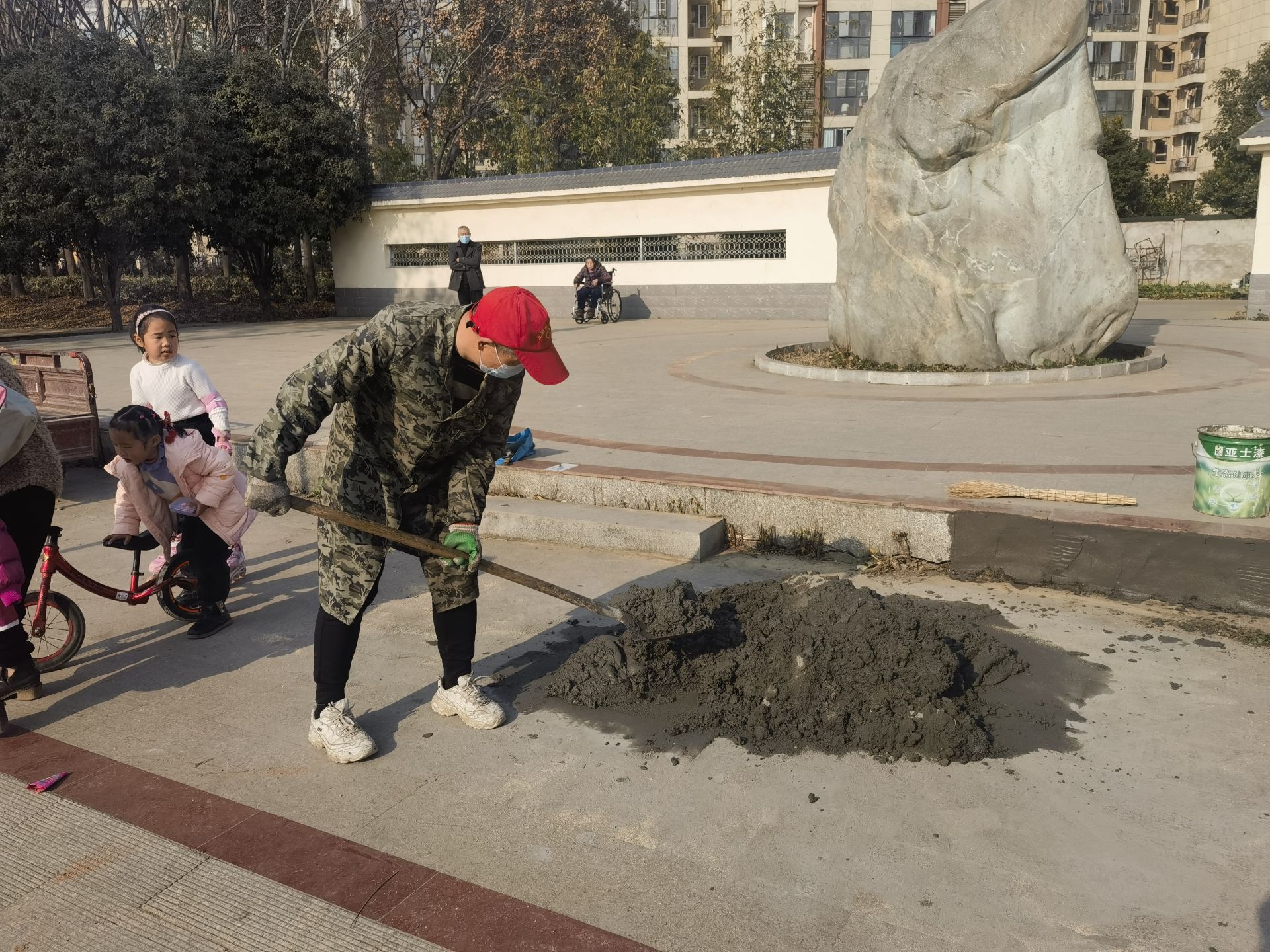 施工期间,中心严格把控地砖选材与铺设工艺,确保铺设平整、牢固耐用;同时设置规范隔离与安全提示,引导人员绕行,保障施工安全。
