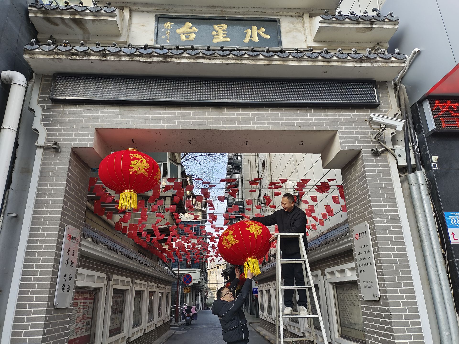 一步一景皆打卡,一帧一画尽欢颜。路灯杆上,三联灯笼串起一路红火;正门路上,花伞缀满枝头传递新春问候;三号门处大型主题打卡布景恢弘大气,彰显奔腾气象。处处留景致,步步可留影,从花伞簇拥的门庭到灯笼摇曳的步道,喜庆氛围扑面而来。
