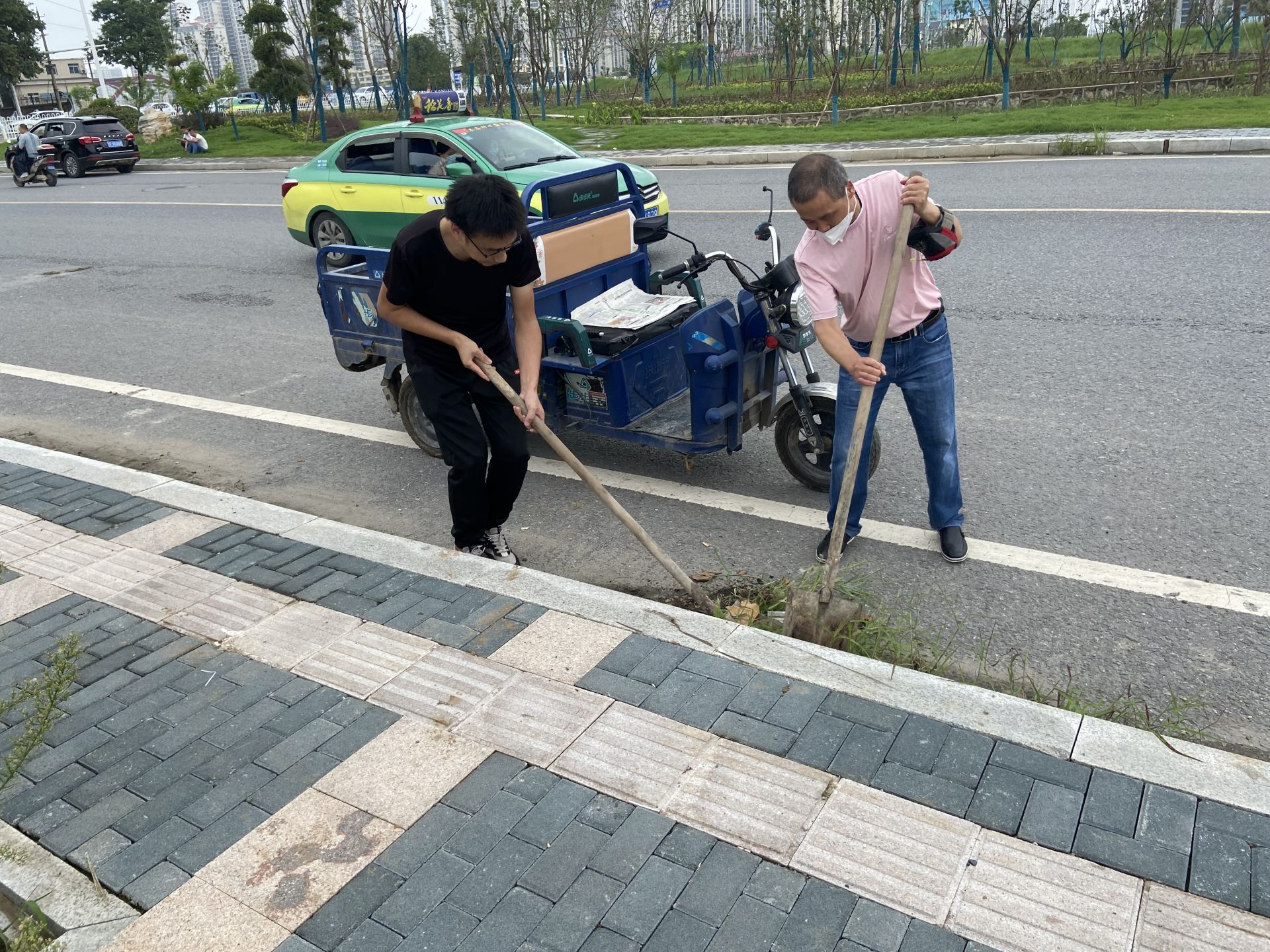 现场,社区工作人员分工合作,用扫帚将路面垃圾清扫到一起,用铁锹铲走路肩上长出的杂草,用垃圾钳捡拾绿化带里的白色垃圾……小到烟头、纸屑,大到堆积的建筑垃圾,工作人员都逐一清理干净。经过两个小时的清理作业,小清河便道的环境卫生面貌焕然一新。