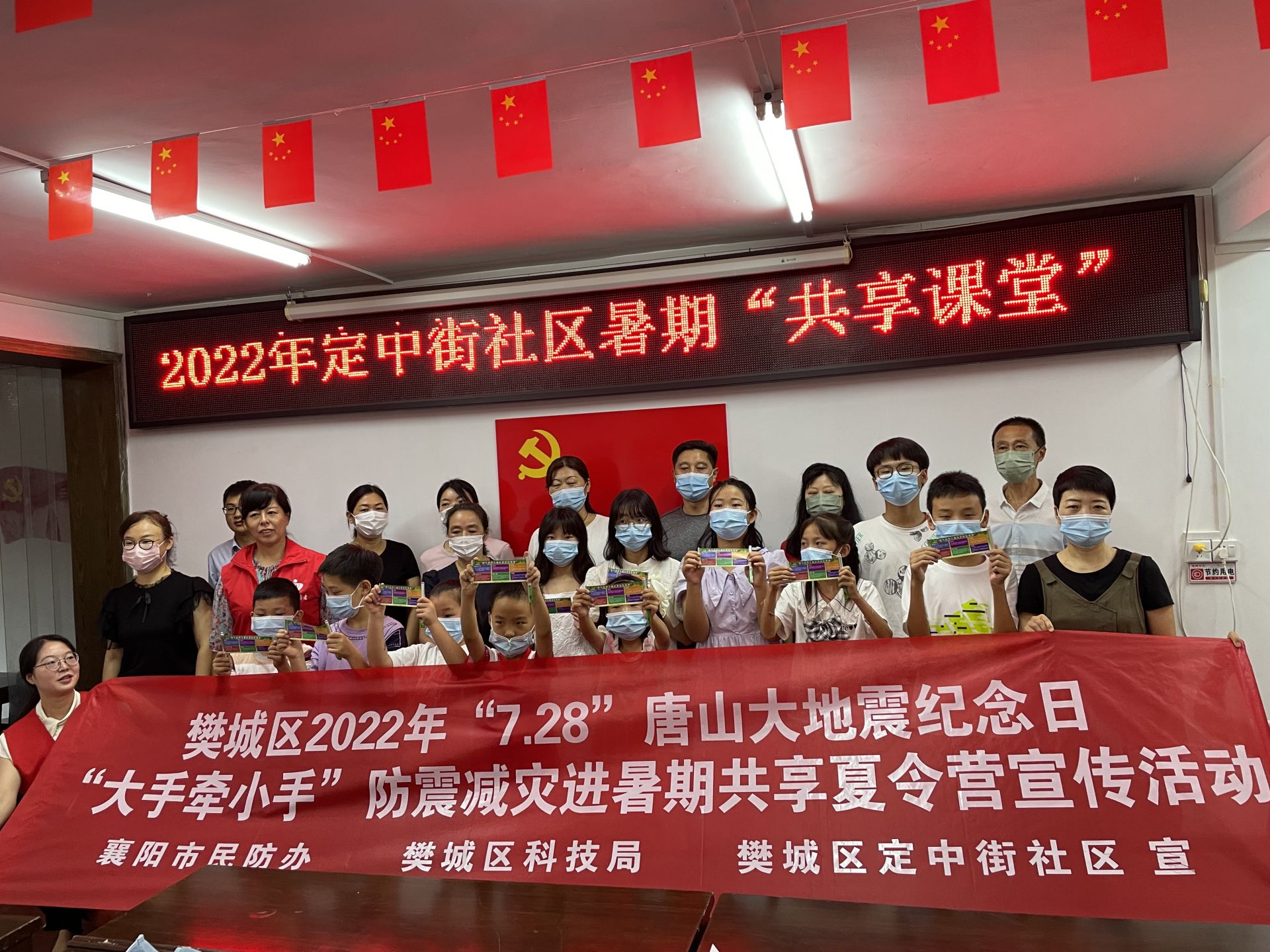 本网讯(通讯员 白俊一)今天是唐山大地震46周年纪念日,为铭记历史、吸取教训,增强全民防震减灾意识,樊城区科技局联合襄阳市民防办、樊城区定中街社区开展了“大手牵小手”防震减灾进暑期宣传活动。