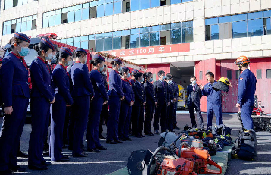 随后,消防员对幼儿园教职工进行培训,完善幼儿园消防应急预案,普及了灭火器“提、拔、握、压”使用口诀,邀请教师职工参与消火栓使用实操。