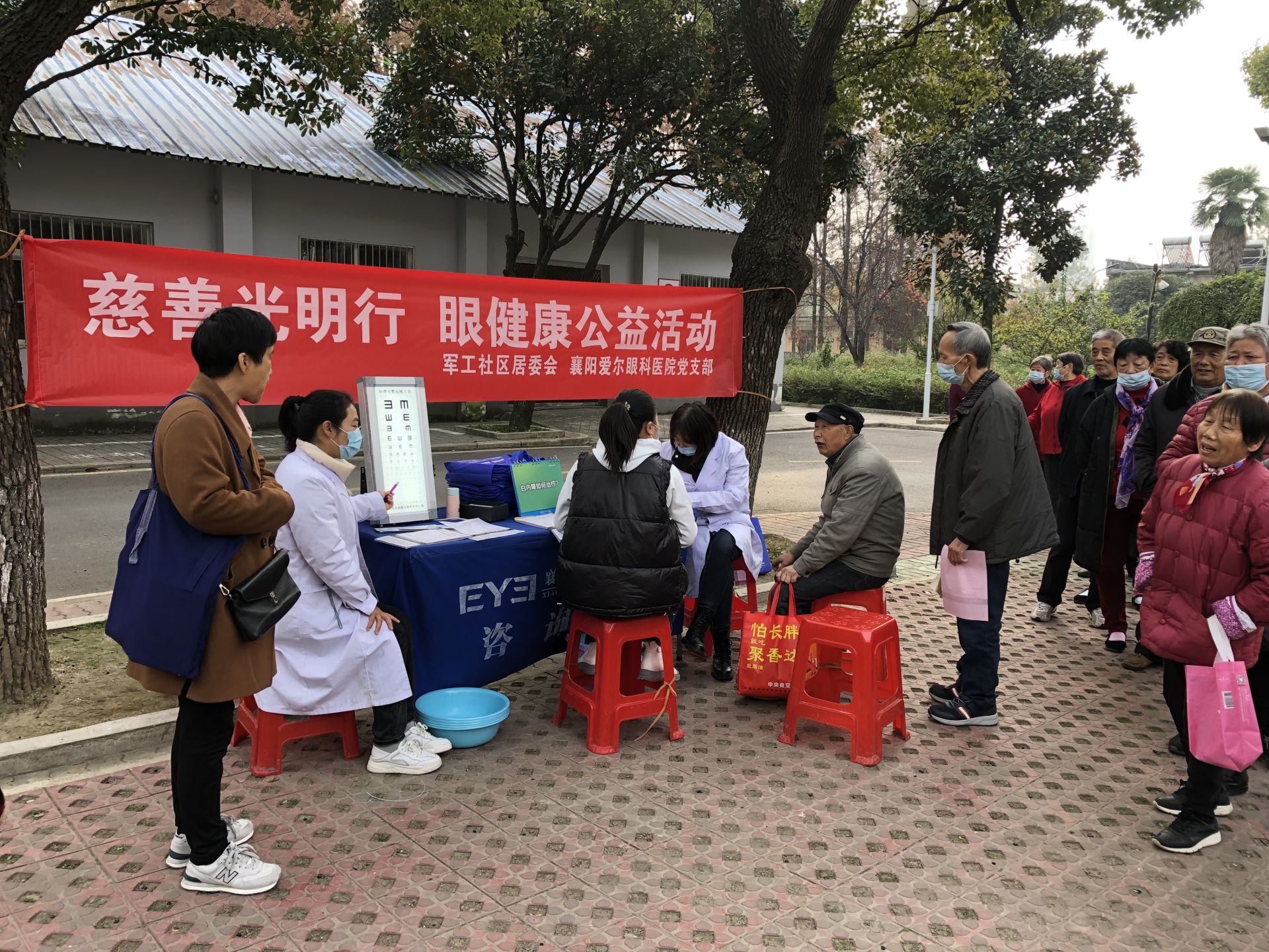 义诊现场,来自爱尔眼科医院的医生本着“早发现、早诊断、早治疗”的原则,为前来就诊的居民群众进行登记、视力检查和眼科检查,耐心地解答居民群众关于眼科疾病方面的问题,给大家发放眼部疾病与预防方面的宣传资料。同时集合实际检查情况,建议他们到医院进行详细检查,制定专业的治疗方案。