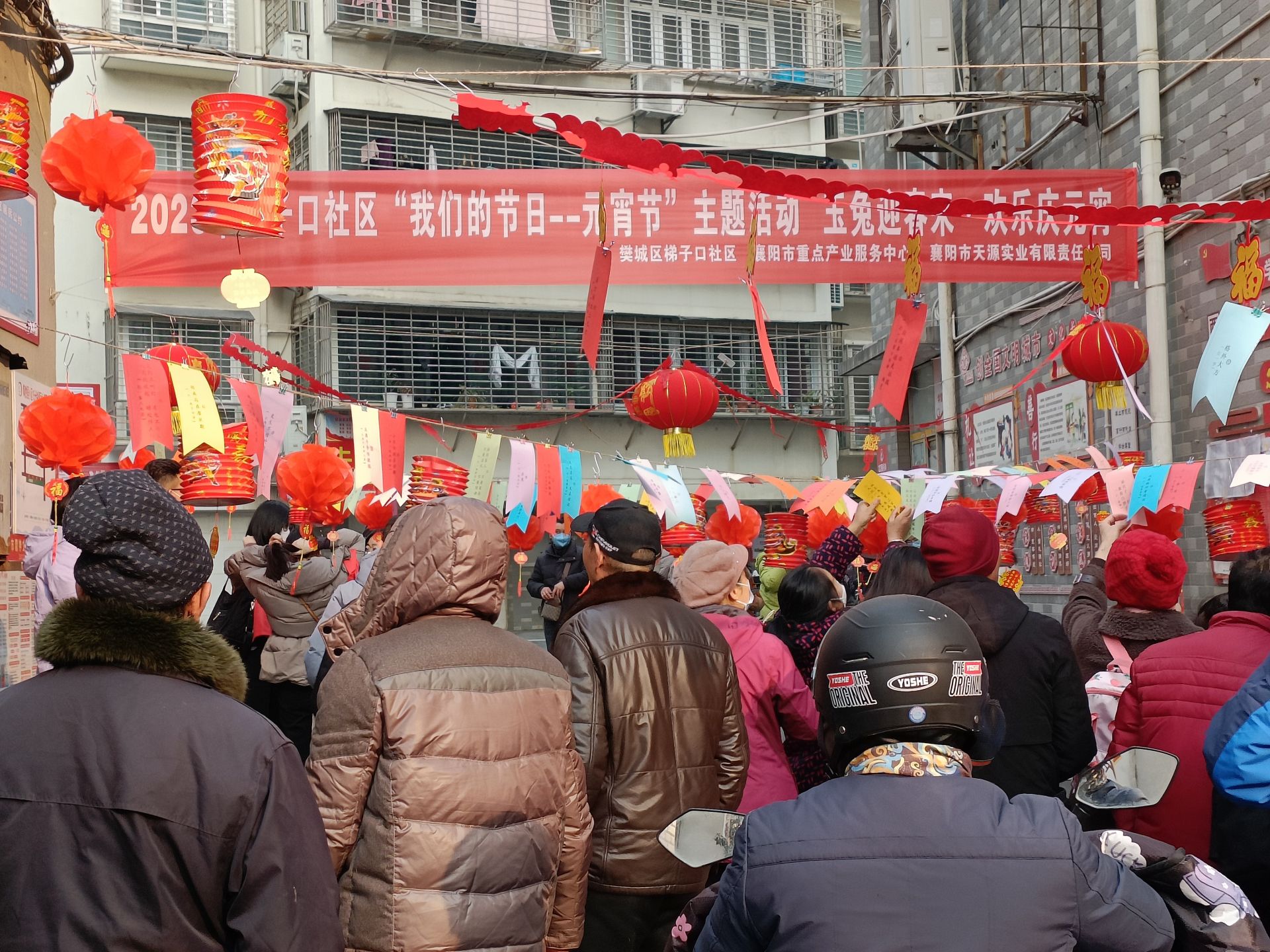 一大早,社区工作人员就将准备好的汤圆、米酒、枸杞、用具搬到场地,用心地布置花灯和场地,营造了一片喜庆的氛围。猜谜语环节,现场居民争先恐后地将谜语卡片取下,谭一川小朋友在爸爸的带领下也取下了一个谜底,只见上面写着“红红果子棍上挂,外裹糖儿味道佳(打一食品)”,经过认真思索,小朋友用稚嫩的声音答到“冰糖葫芦”,工作人员热情为他们送上可爱的兔子形象的小礼品。