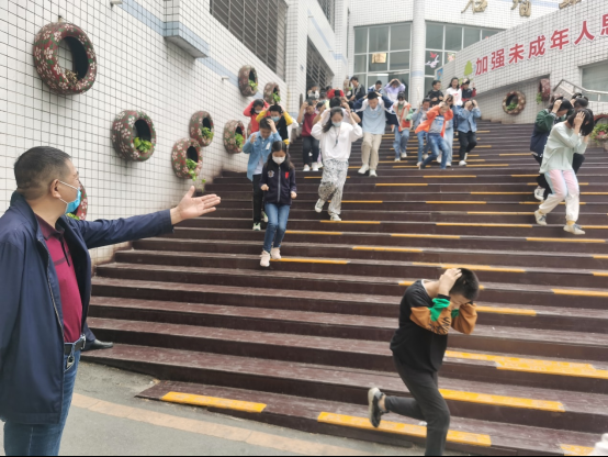 近日,清河口小学开展防震演练。在广播的统一指令下,各班教师迅速到岗,沉着冷静地指挥同学们用双手把书本放在头顶,按照座次顺序依次跑出教室,并按照疏散路线排成纵队,快速向楼下跑去。途中,孩子们冷静、有序、快速撤离。教师们分别前后看护孩子们。各班师生撤离到安全地带后,开始清点学生人数,并及时向应急小组领导汇报,整个疏散演练过程既紧凑又有序,没有丝毫的慌乱,达到了预期的效果。