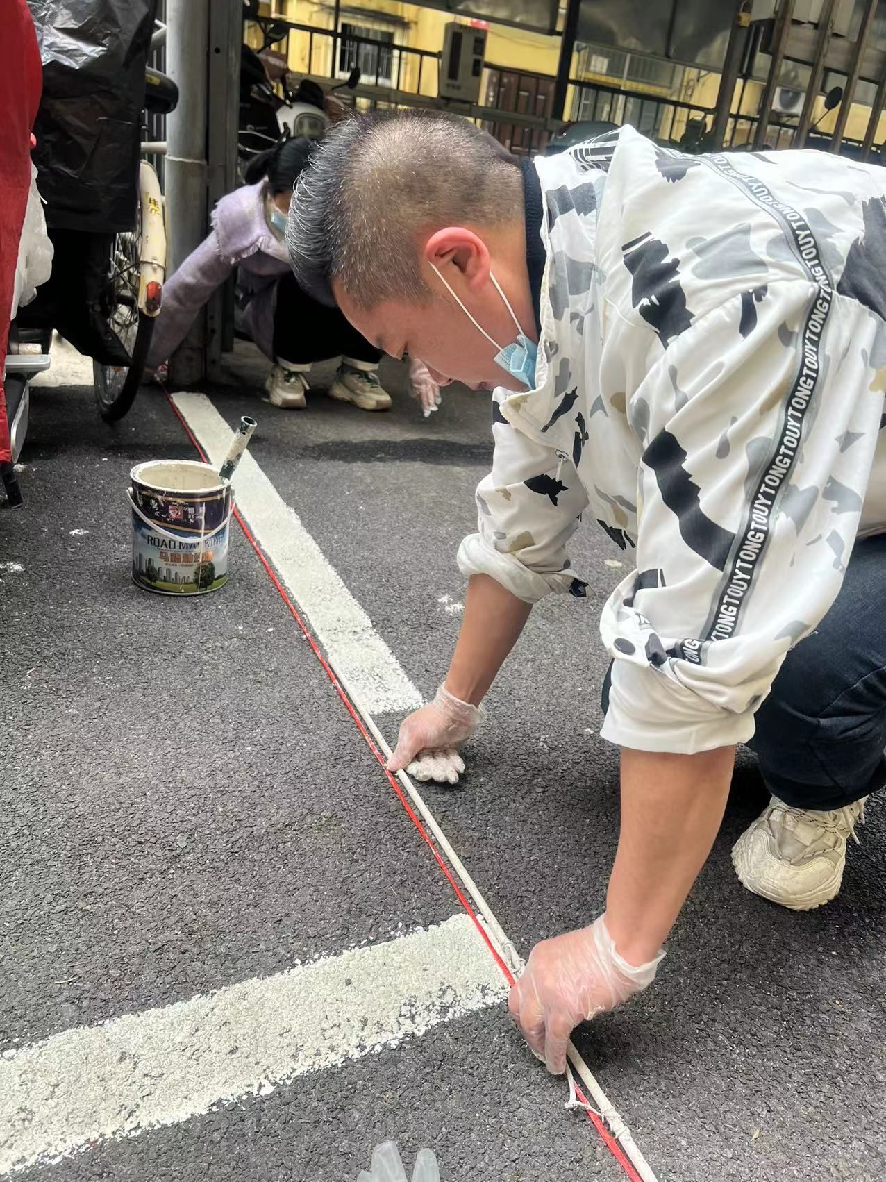 社区志愿者拿着白漆、刷子等工具分别在小区补划停车线,标识三车停放区域,并对模糊的停车线进行修补。同时向居民宣传规范停车、文明停车相关制度,使居民三车停放更加规范。此次施划停车线,缓解了楼院内停车乱、停车难问题,增大了非机动车辆停放容量,有效地解决了车辆乱停乱放等现象。