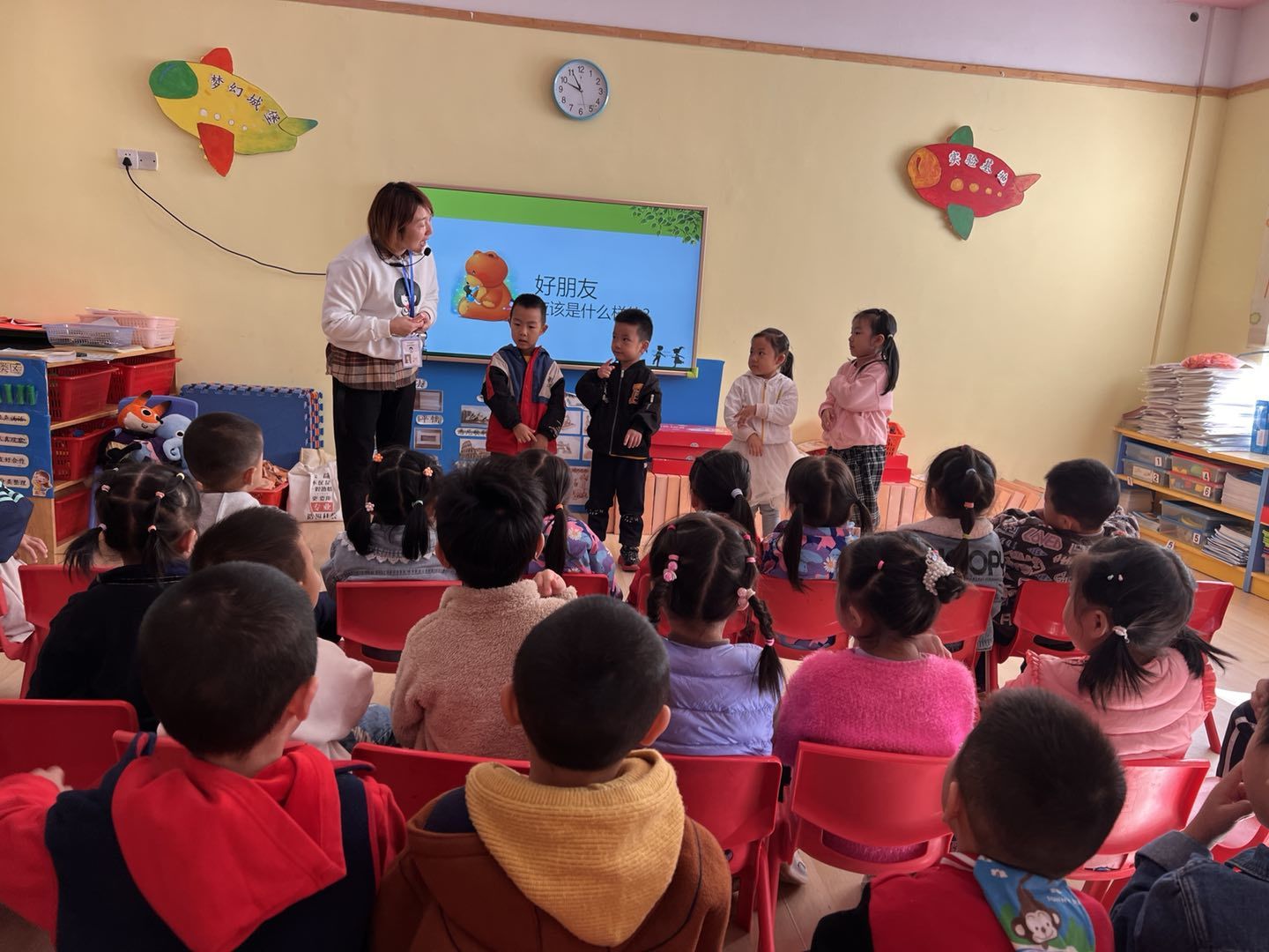 活动伊始,张老师以《爱护我们的身体》为主题。从“认识我们的身体”“如何分辨和防范性侵害”“遇到性侵害时该怎么做”“万一遭到性侵害后该做什么”四个方面进行生动讲述。以“小朋友们的好朋友是什么样的?”提问形式引入活动。活动中通过问答、游戏等形式让儿童理解什么是性侵害,通过与助教老师情景表演让儿童及家长感受哪些行为属于性侵害行为,哪些情况下可以大声地呼喊“我不认识你,不要碰我”,真正掌握防范性侵的方式和方法,告诉孩子们如果遇到危险时如何应对和保护自己不受侵害。最后,张老师还为每一位孩子送上了一本图文并茂的防性侵手册,旨在通过详细的文字说明和形象的漫画图片,帮助孩子进一步巩固保护自己的知识和技能。