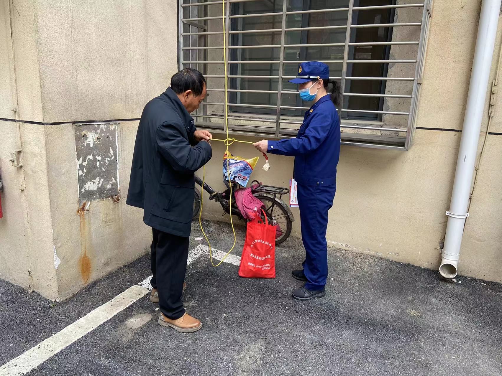 在排查过程中,发现部分居民从窗口把电线拉到楼下充电,长期风吹日晒,电线绝缘层磨损老化,存在漏电风险,容易引发火灾事故。对发现的“飞线充电”及私拉乱接现象,向他们讲解“飞线充电”的危害性和风险性,要求涉事住户积极整改,规范充电行为。本次排查共清理了8处“飞线充电”,整理了5辆非机动车,有效地排除了辖区内的安全隐患。