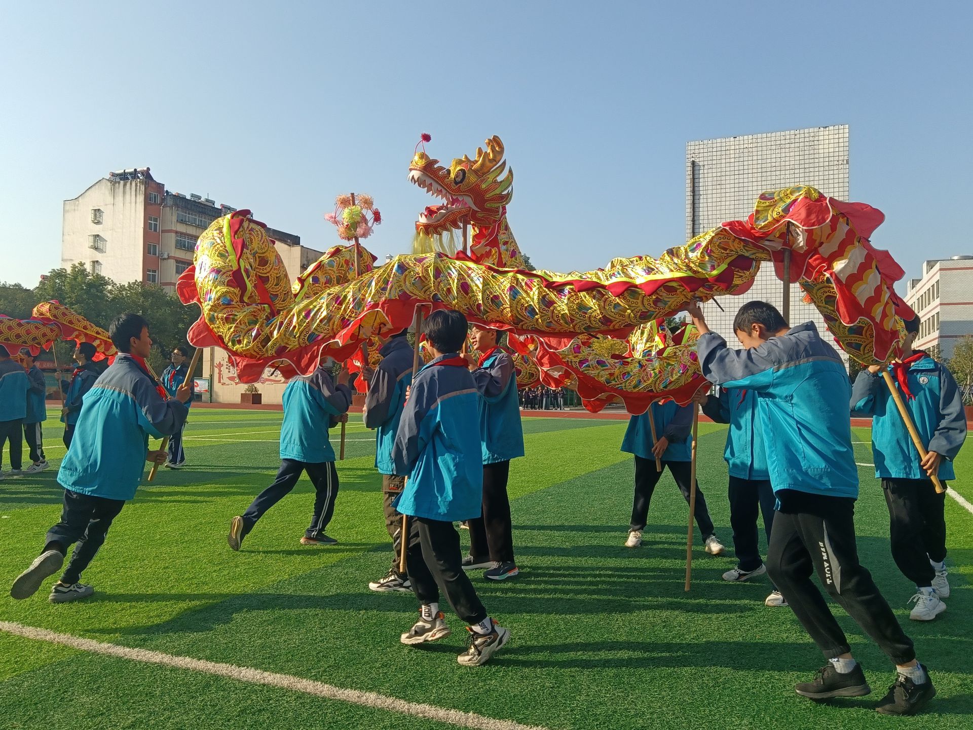 赛场上,同学们身着整齐校服,精神抖擞,斗志昂扬,迈着坚定步伐,喊着响亮口号依次入场。那整齐的队列、规范的动作、饱满的精神,无不展现出该校学生的青春活力与良好精神风貌。