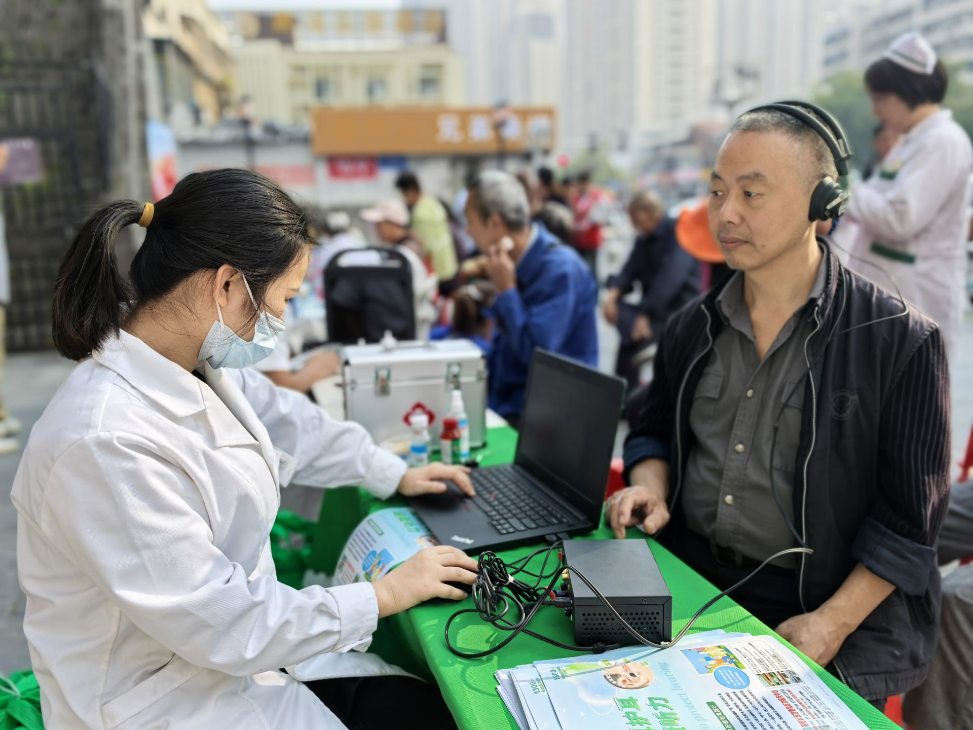 活动当日,前来咨询和检查的居民络绎不绝。来自时代口腔的医生们耐心地为居民们进行口腔检查,针对常见的口腔问题,提供了专业的治疗建议和日常护理知识。鼓楼医院的医疗团队则运用先进的设备,为居民测量血压、血糖,解答各类健康疑问,对患有慢性疾病的居民,制定个性化的治疗方案,并叮嘱他们按时服药、定期复查。惠耳听力的工作人员细致地为居民进行听力测试,对听力障碍患者提供针对性的康复指导,帮助他们改善听力状况,提升生活质量。