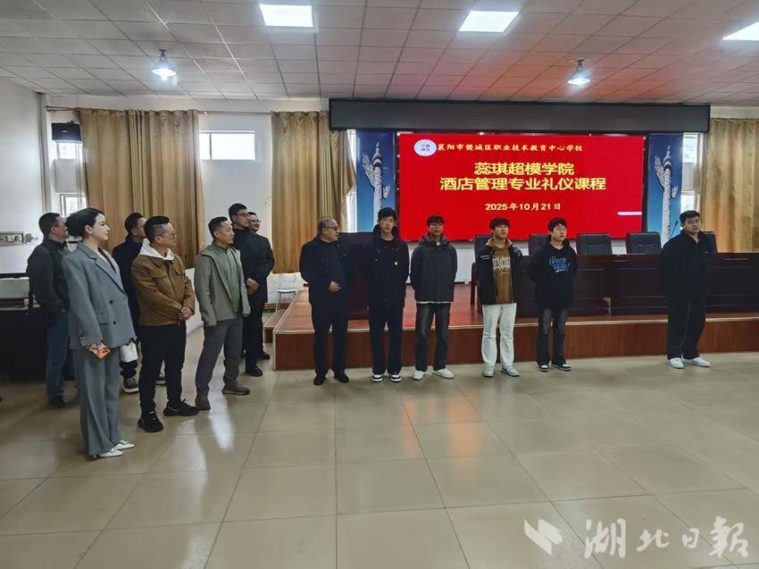 现场参观完毕,调研团一行在会议室进行了亲切座谈。樊城职教中心学校校长张红伟汇报了学校基本情况与校企合作成果。张校长重点提及,学校已与酷娱科技、万洲电气、周边汽车4S店等企业建立合作机制,今年还计划引入美容美甲、无人机操作、视频剪辑等技能选修课程,采用“企业导师驻校+教师现场助教”的双导师制度,培养符合区域产业需求的技能人才。调研团成员认真聆听汇报,就专业设置优化、实训资源扩容等问题展开交流,纷纷表示学校办学定位清晰,校企合作模式务实,为樊城区培养技能型人才提供了有力支撑。座谈会后,学校与襄阳蔓琪传媒举行了校企合作现场签约仪式,根据协议,双方将在酒店管理、人才培养等领域展开深入合作。