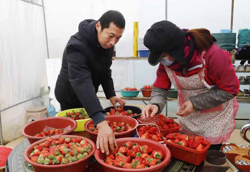 2022年,村民徐科在村委会的劝说下,放弃了在城里的工作,转行回到村里种植草莓。刚开始,他只承包了4个大棚,每天天不亮就钻进棚里,观察草莓的长势,跟着专家学修剪、防病虫害。遇到难题,村支书就带着他去别的种植户家取经;缺资金买肥料,村委会帮他申请了创业补贴。一年下来,4个大棚赚了8万多,徐科更有干劲了,第二年就把大棚扩到了10个,种植规模超15亩,年产量达4万斤,纯收入有25万元。