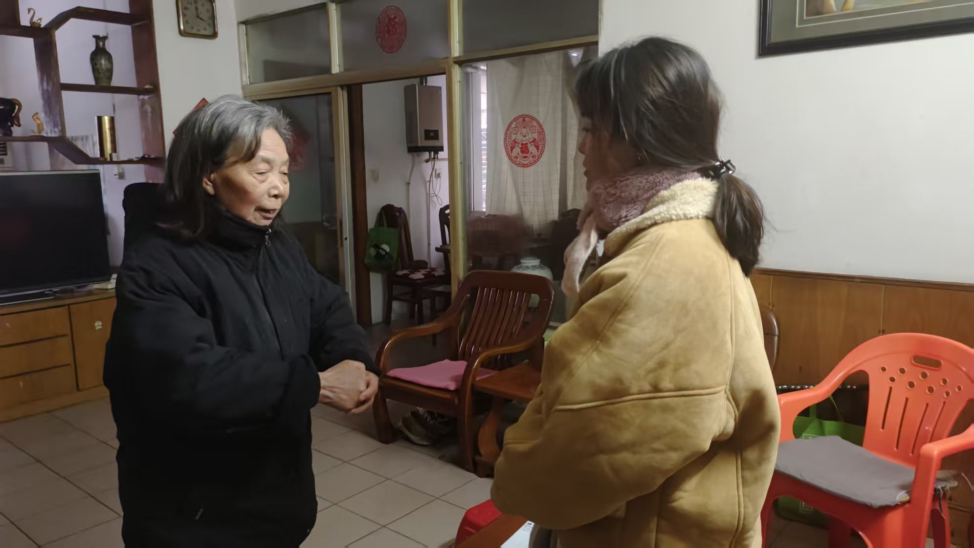 在 80 岁独居老人李大爷家中,志愿者小王敏锐发现电暖器距离沙发过近的安全隐患,当即协助调整设备位置,并结合冬季火灾防范要点,耐心讲解用电、用火安全知识,手把手指导老人正确使用取暖器具。“孩子们都在外地工作,这么冷的天,你们还特意来看我,真是太感谢了!” 李大爷握着志愿者的手,连连道谢。
