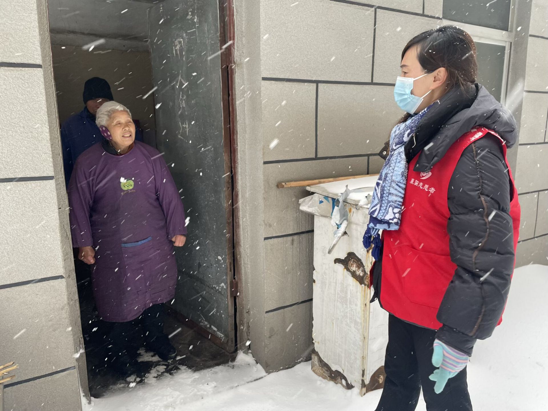 风雪无阻,温情上门。当天下午,漫天飞雪飘落,5 支志愿者小组踏着积雪、冒着严寒,挨家挨户敲响独居老人的家门。“张奶奶,下雪路滑,尽量别出门!”“取暖设备一定要注意用电安全!” 一声声叮嘱,温暖了老人的心。